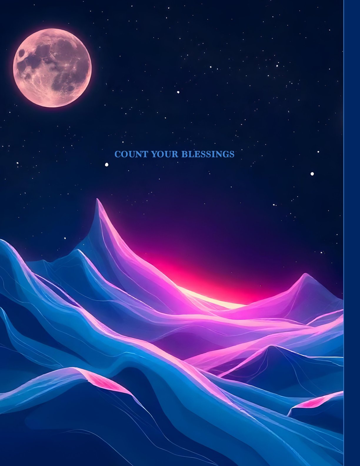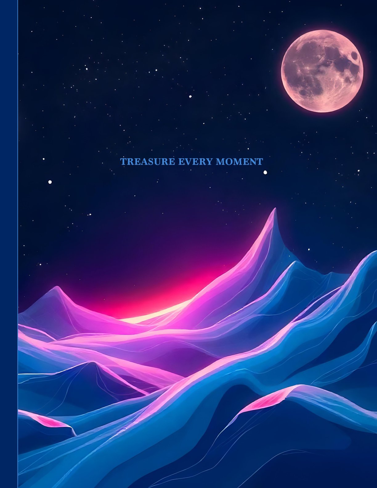Evolve through reflection. The Reflections Beyond Journal invites you to journey inward beneath a surreal sky of cosmic blues and radiant moonlight. With a dreamscape of glowing peaks and soft starlight, this journal becomes your space to transcend the ordinary and explore what lies within.